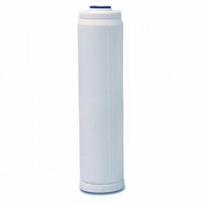 A 20" big blue cartridge specially designed to remove Fluoride and arsenic from the source water. This cartridge is usually post-filtered via a carbon block in a typical installation.