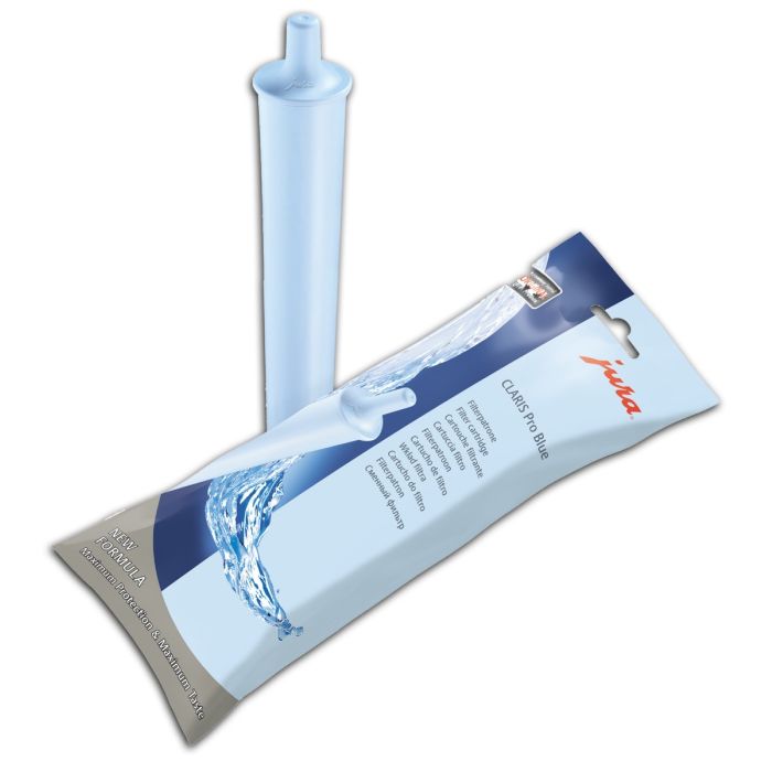 The special formula used within the CLARIS Pro Blue filter has been developed specifically for commercial automatic machines with a one-touch cappuccino function. This filter contains a mineral which stabilises calcium carbonate, the main component of limescale, so that it isn't deposited into the fluid system of your Jura machine, even when steam preparations occur on a frequent basis.