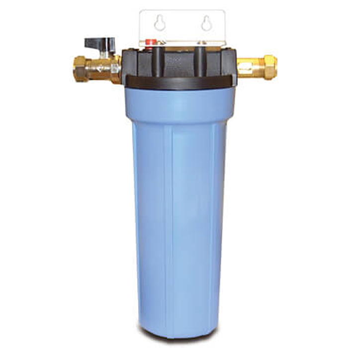 Pozzani's No10-CT600 is a cartridge-based filter that fits into an inline housing. It doses the water with a food grade hexameta polyphosphate material which is approved for use with drinking water.